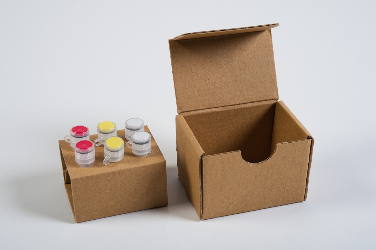 Wellpappfaltschachtel mit Ampulleneinsatz für den innovativen Molekular-Dienstleister aus Radebeul.